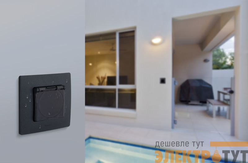 672626 | Розетка 1-м СП Etika 16А IP44 250В с заземл. со шторками с защ. крышкой безвинтов. зажимы антрацит IEK