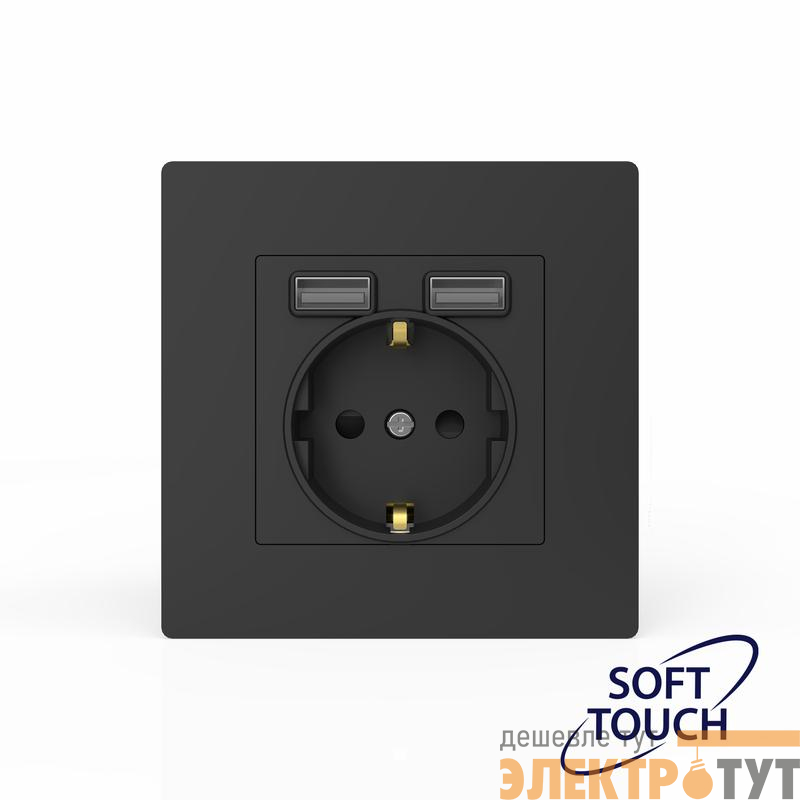 TKE-PX-R1U2A-C14 | Розетка 1-м СП Pixel IP20 с заземл. с 2-мя заряд. устр. USB тип A+A механизм карбон TOKOV ELECTRIC