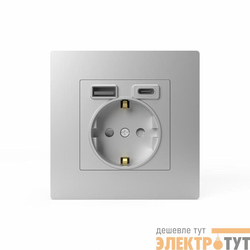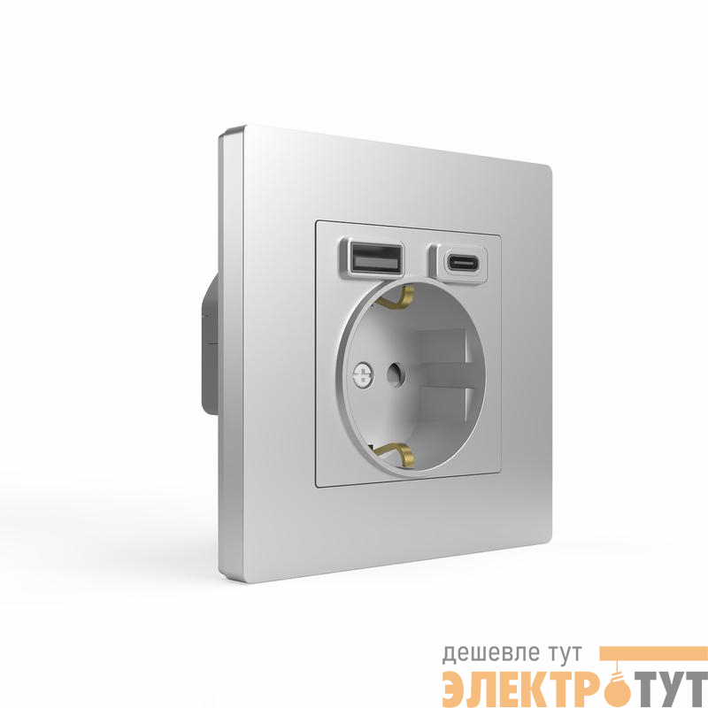 TKE-PX-R1U2AC-C03 | Розетка 1-м СП Pixel IP20 с заземл. с 2-мя заряд. устр. USB тип A+C механизм алюм. TOKOV ELECTRIC