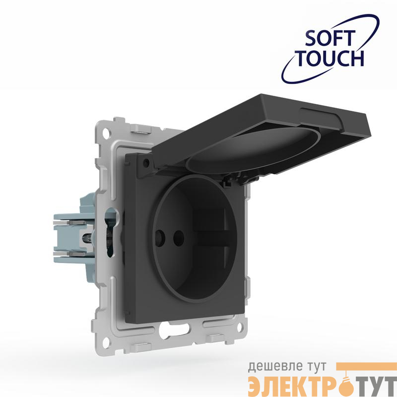 TKE-PX-R1ZSW1-C14-IP44 | Розетка 1-м СП Pixel IP44 с заземл. с крышкой механизм карбон TOKOV ELECTRIC