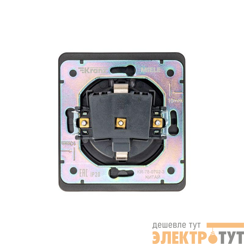 KR-78-0702-3 | Розетка 1-м СП ROUND MIELE 16А с заземл. защ. шторки и крышкой оникс Kranz