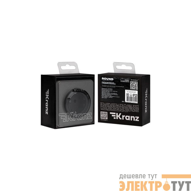 KR-78-0702-2 | Розетка 1-м СП ROUND MIELE 16А с заземл. защ. шторки и крышкой титан Kranz