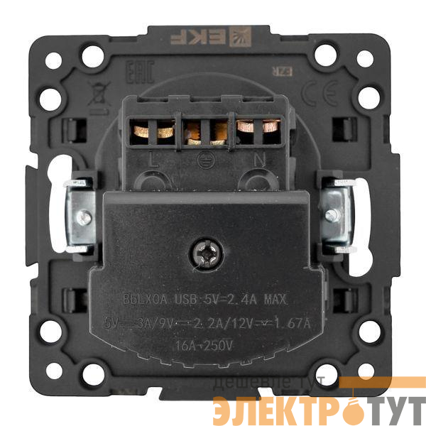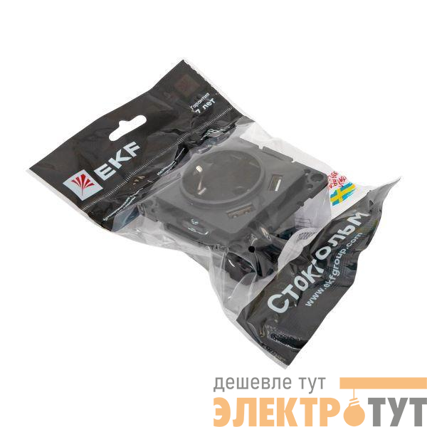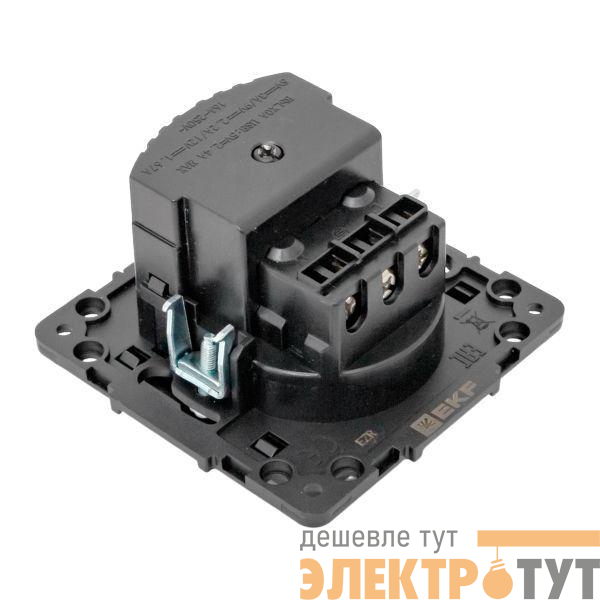 EZR16-2USB-typeA | Розетка 1-м СП Стокгольм 16А USB 2A с заземл. защ. шторки винтов. клеммы механизм черн. EKF