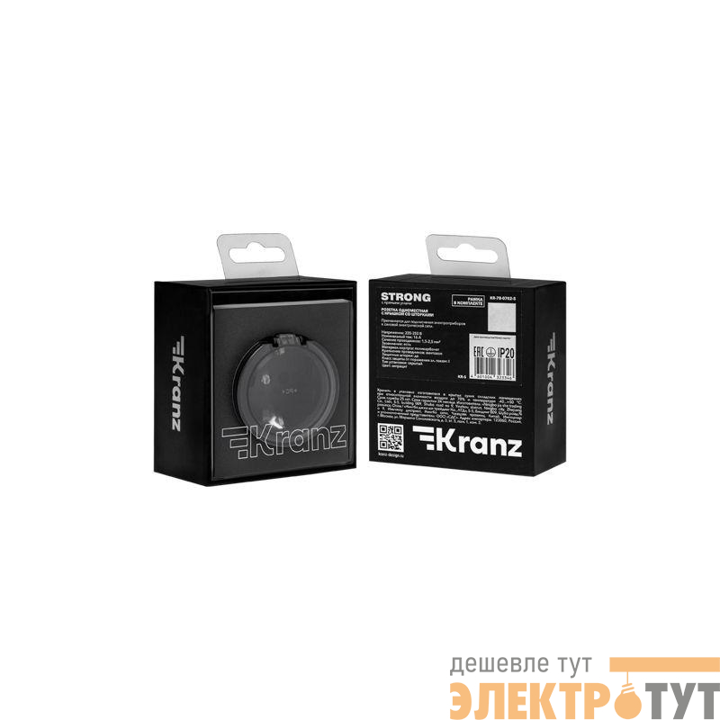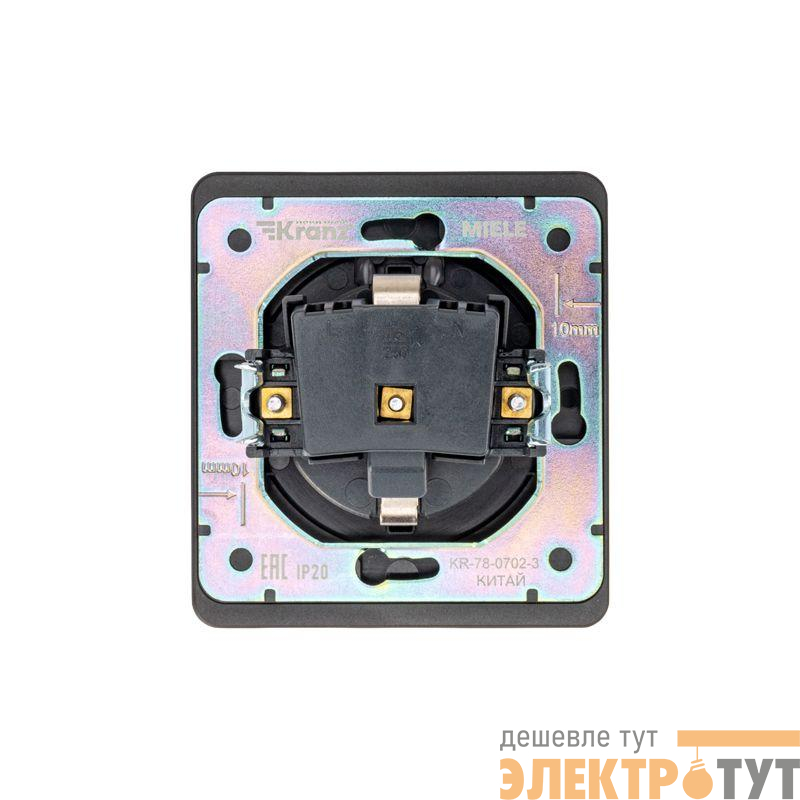KR-78-0702-5 | Розетка 1-м СП STRONG MIELE 16А с заземл. защ. шторки и крышкой антрацит Kranz