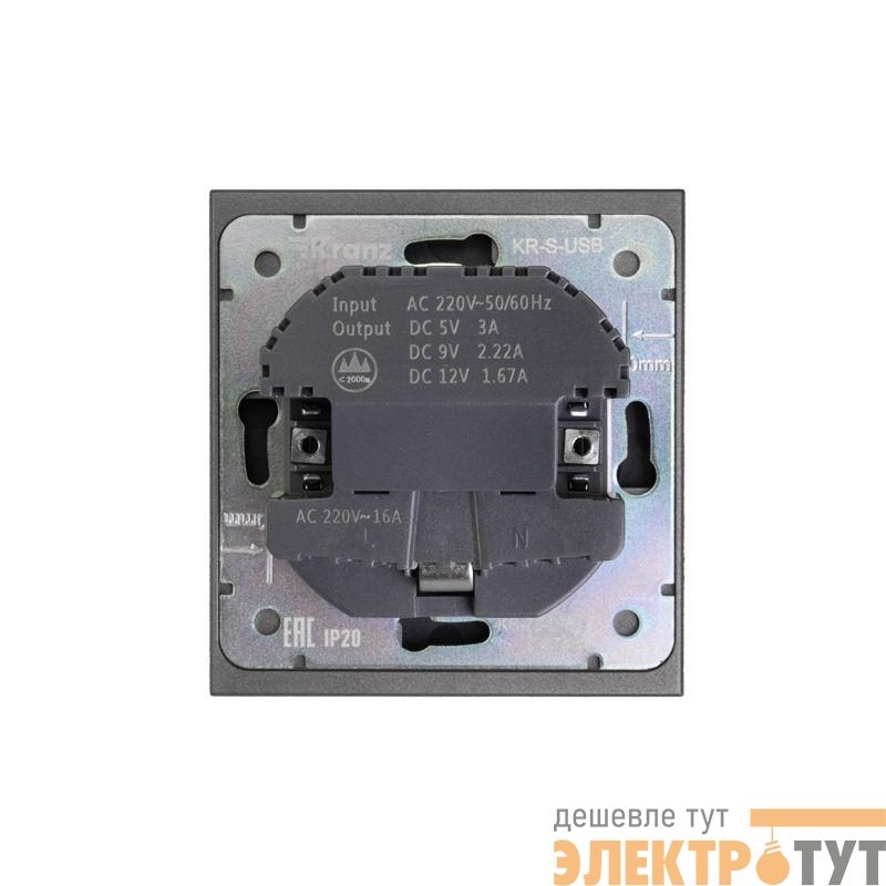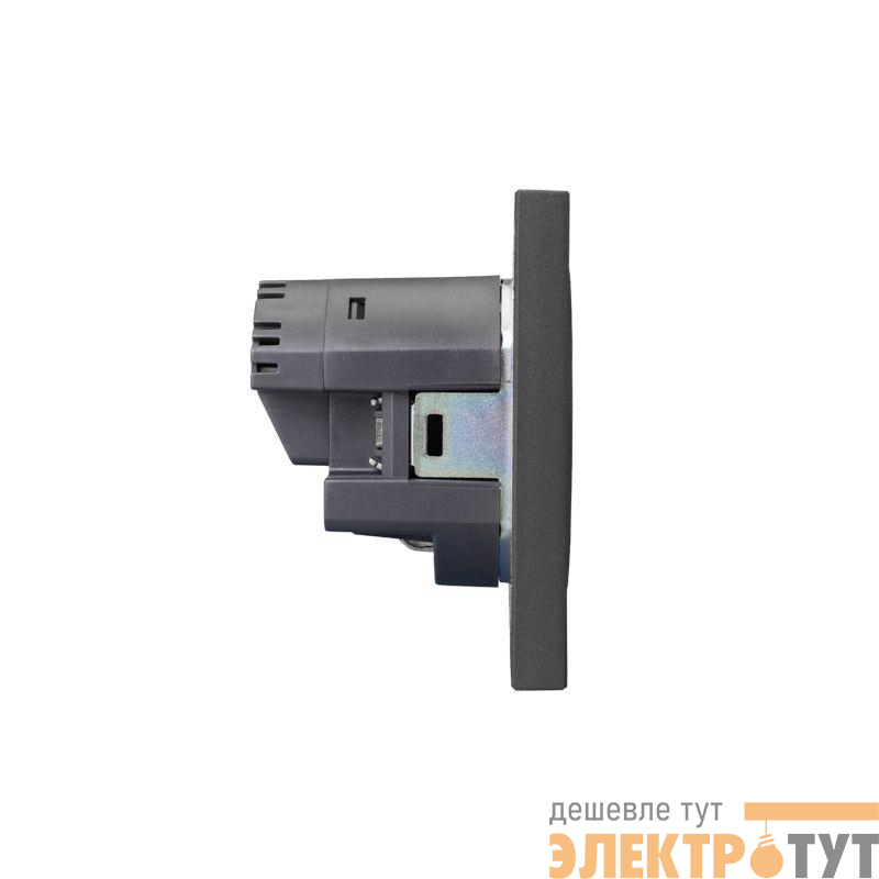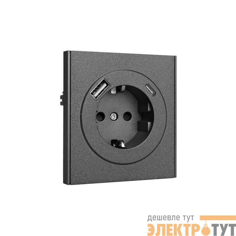 KR-78-0704-6 | Розетка 1-м СП STRONG MIELE 16А с заземл. защ. шторки с USB A+C быстрой зарядки 5В/3А графит Kranz
