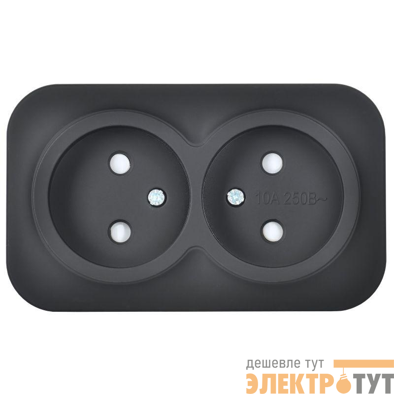 ERH23-K02M-10 | Розетка 2-м ОП GLORY РСш22-2-ХЧм 10А без заземл. защ. шторки черн. матов. IEK