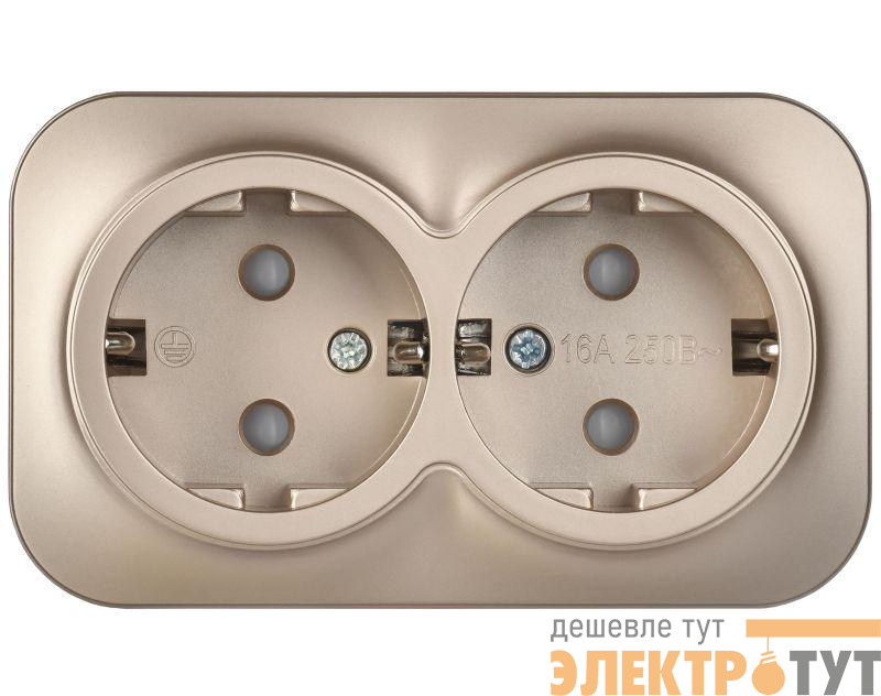 ERH24-K37M-16 | Розетка 2-м ОП GLORY РСш22-3-ХШм 16А с заземл. защ. шторки шампань матов. IEK