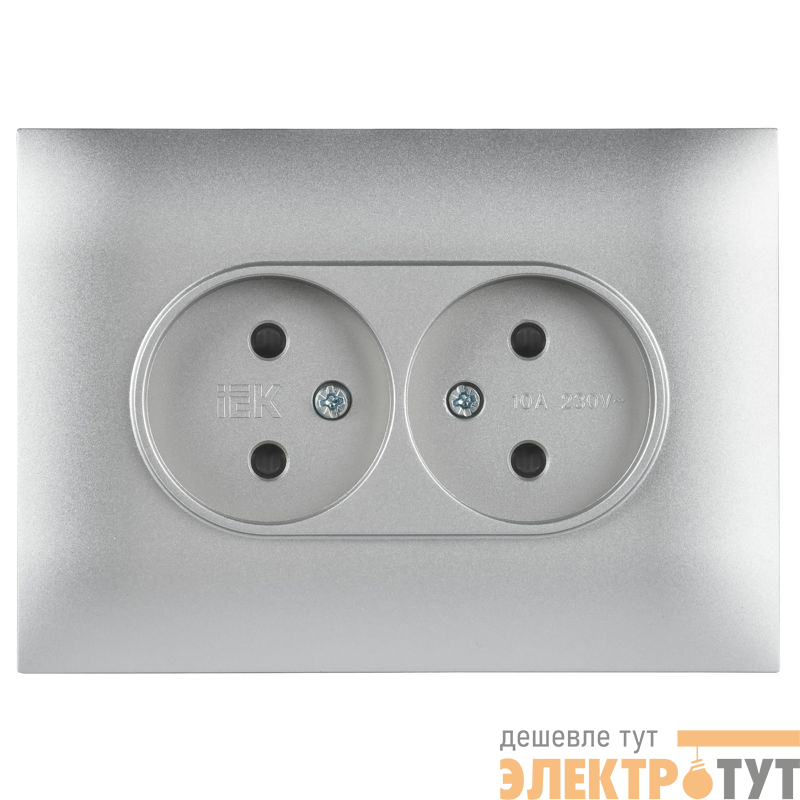 | Розетка 2-м SKANDY 10А без заземл. защ. шторки в сборе SK-R09S серебр. IEK SK-R23-10-K23-F