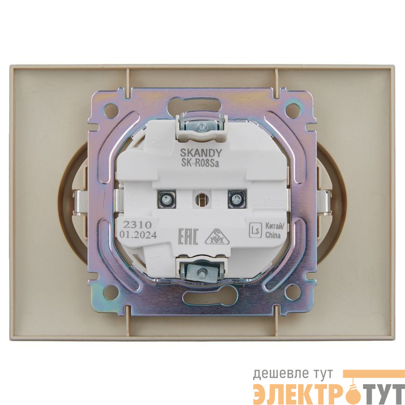 | Розетка 2-м SKANDY 16А с заземл. без защ. шторок в сборе SK-R08Sa песочн. IEK SK-R21-16-K98-F