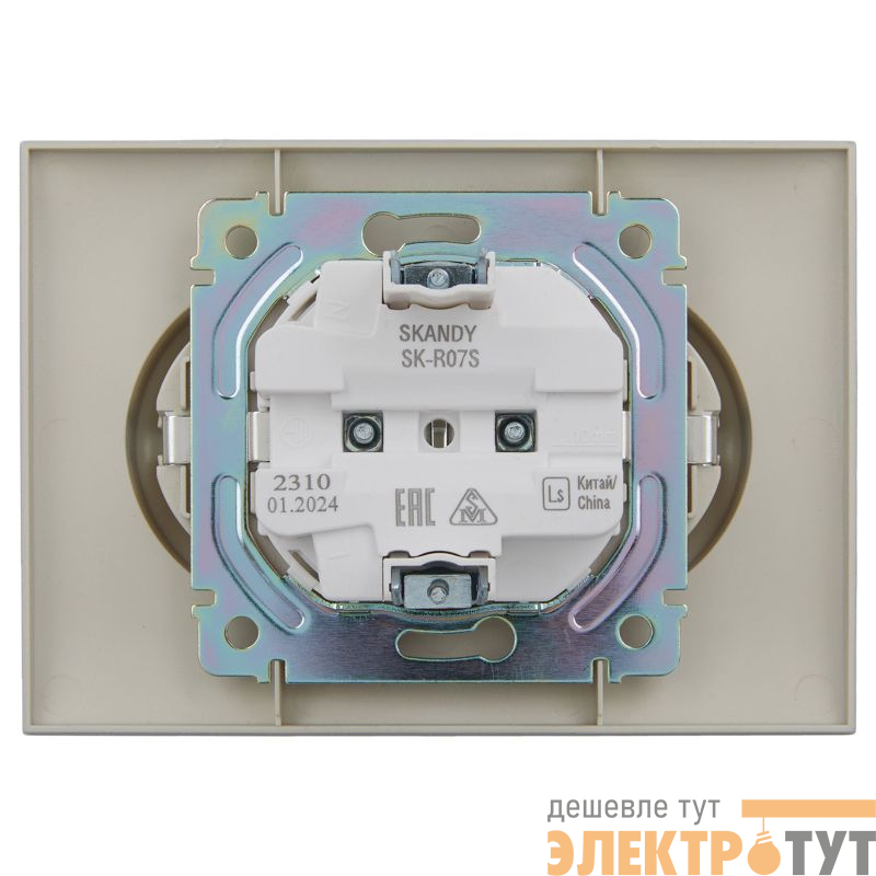 | Розетка 2-м SKANDY 16А с заземл. защ. шторки в сборе SK-R07S серебр. IEK SK-R24-16-K23-F