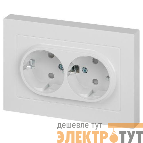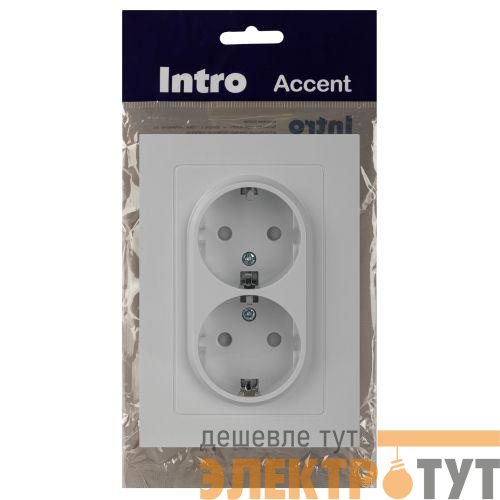 Б0063528 | Розетка 2-м СП Accent 6-208-01 16А IP20 250В 2P+E Schuko со шторками AL/CU бел. Intro