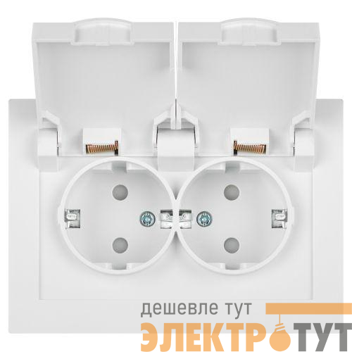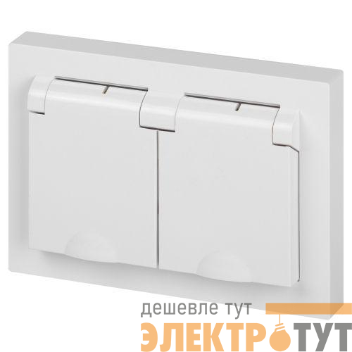 Б0063577 | Розетка 2-м СП Accent 6-210-01 16А IP44 250В 2P+E Schuko с крышками защ. шторки AL/CU бел. Intro