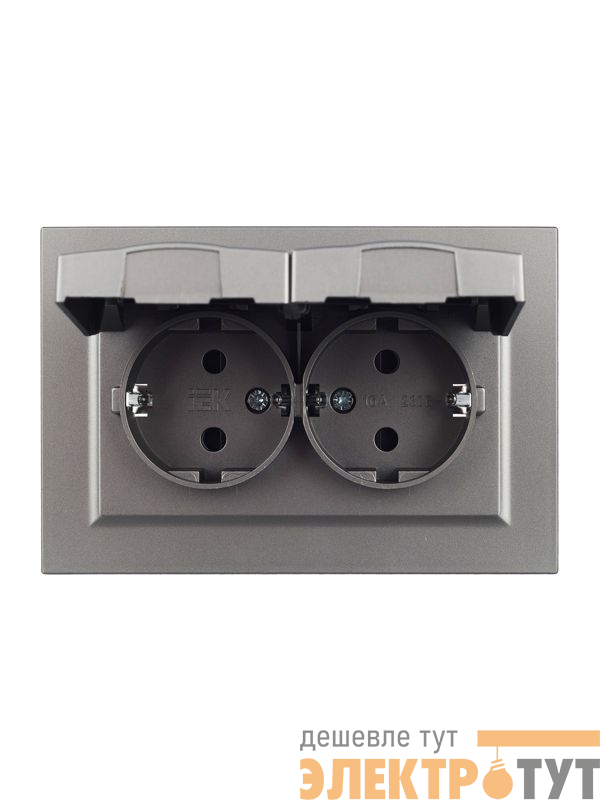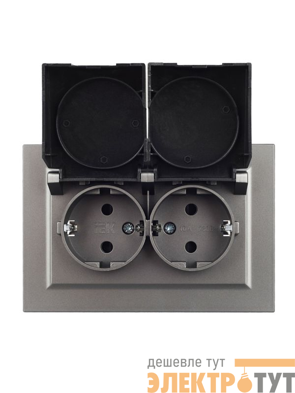 | Розетка 2-м СП BRITE РСбш12-3-44-БрС 16А в сборе IP44 с крышкой сталь IEK BR-R26-16-44-K46-F