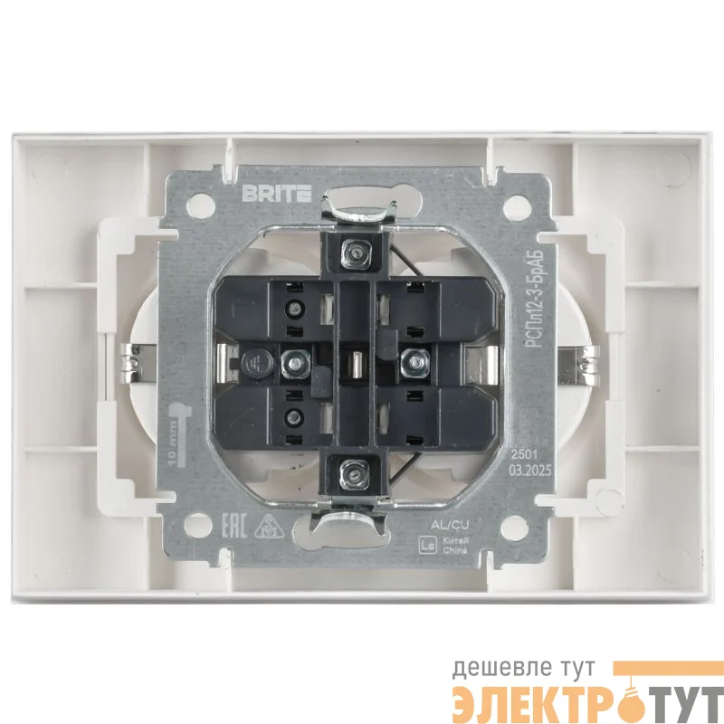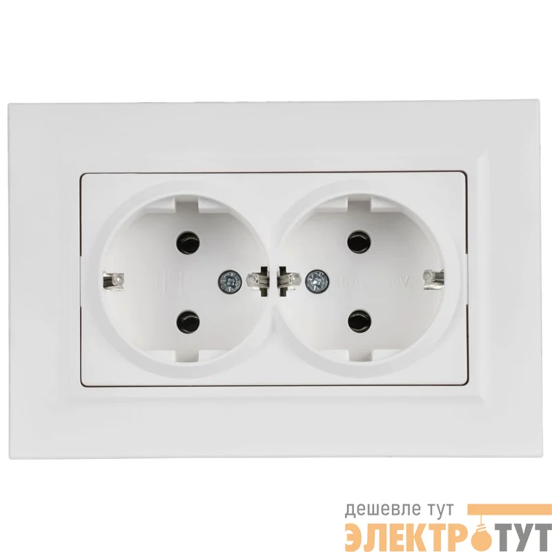 BR-R27-16-K91-F | Розетка 2-м СП BRITE РСПл12-3-БрАБ 16А в сборе с заземл. без защ. шторок плоская арктич. бел. IEK