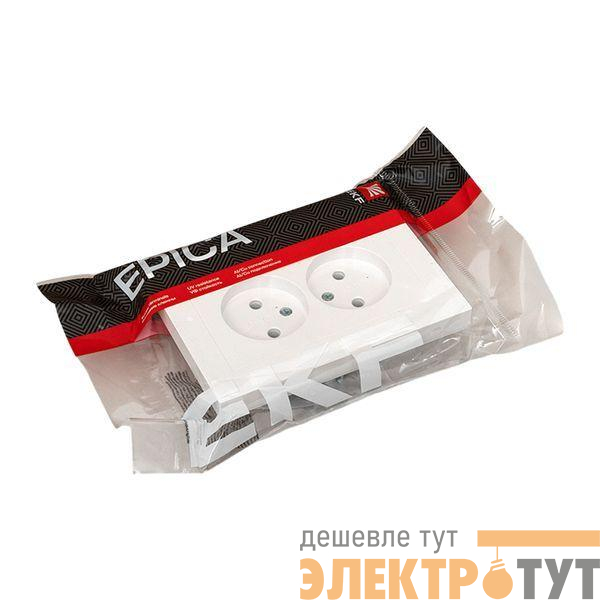 Двуместная розетка EKF коллекции «Эпика» — надежное и стильное решение для подключения электроприборов в помещениях, где не требуется усиленная защита.