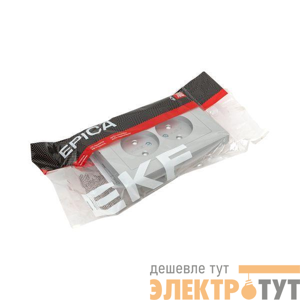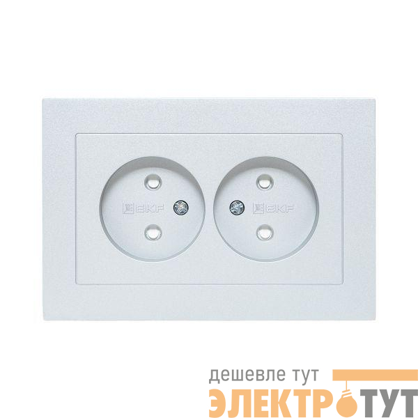 Двуместная розетка EKF коллекции «Эпика» без заземления и с защитными шторками — надежное и стильное решение для подключения электроприборов.