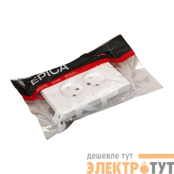 Двуместная розетка EKF коллекции «Эпика» без заземления и с защитными шторками — надежное и стильное решение для подключения электроприборов.