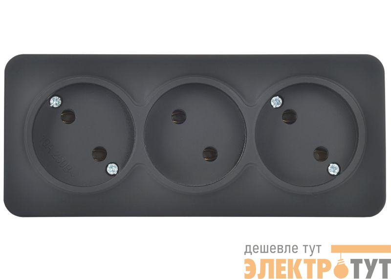 ERH30-K02M-10 | Розетка 3-м ОП GLORY РС23-2-ХЧм 10А без заземл. без защ. шторок черн. матов. IEK
