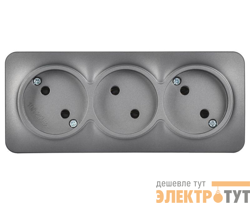 ERH30-K46M-10 | Розетка 3-м ОП GLORY РС23-2-ХСм 10А без заземл. без защ. шторок сталь матов. IEK