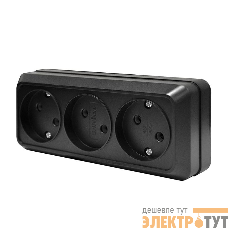 2217 | Розетка 3-м ОП Олимп 16А IP20 без заземл. черн. Universal