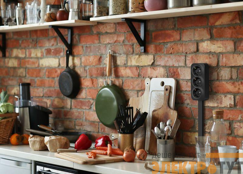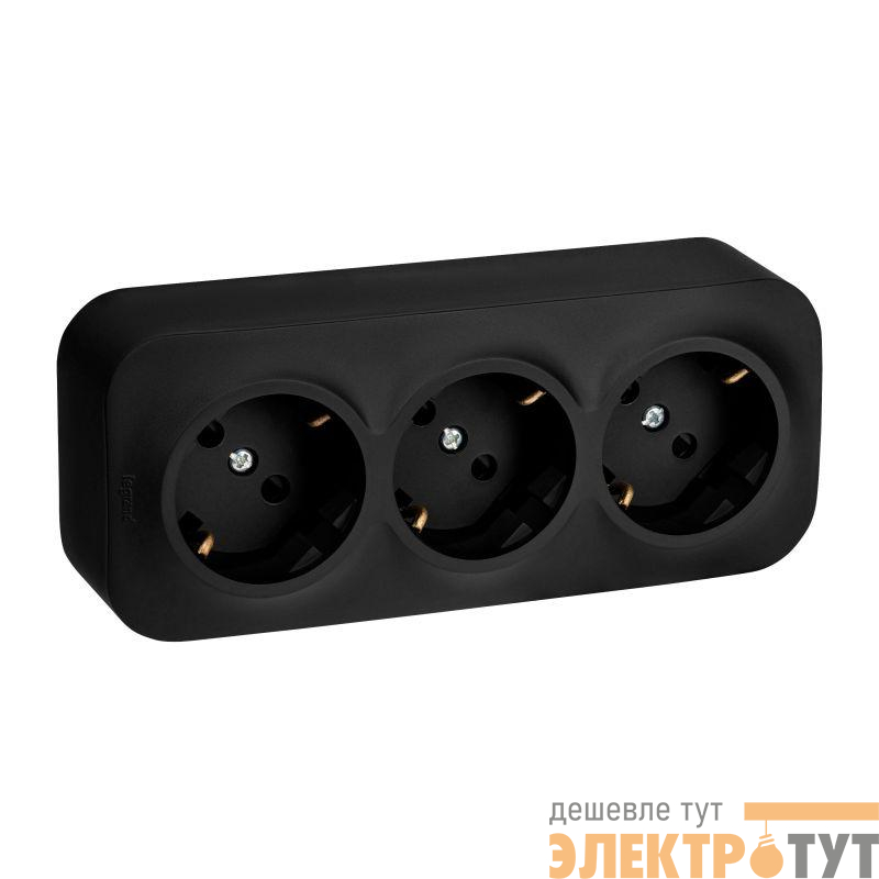 782473 | Розетка 3-м ОП Quteo 16А IP20 250В 3х2P+E с заземл. защ. шторки черн. матов. IEK
