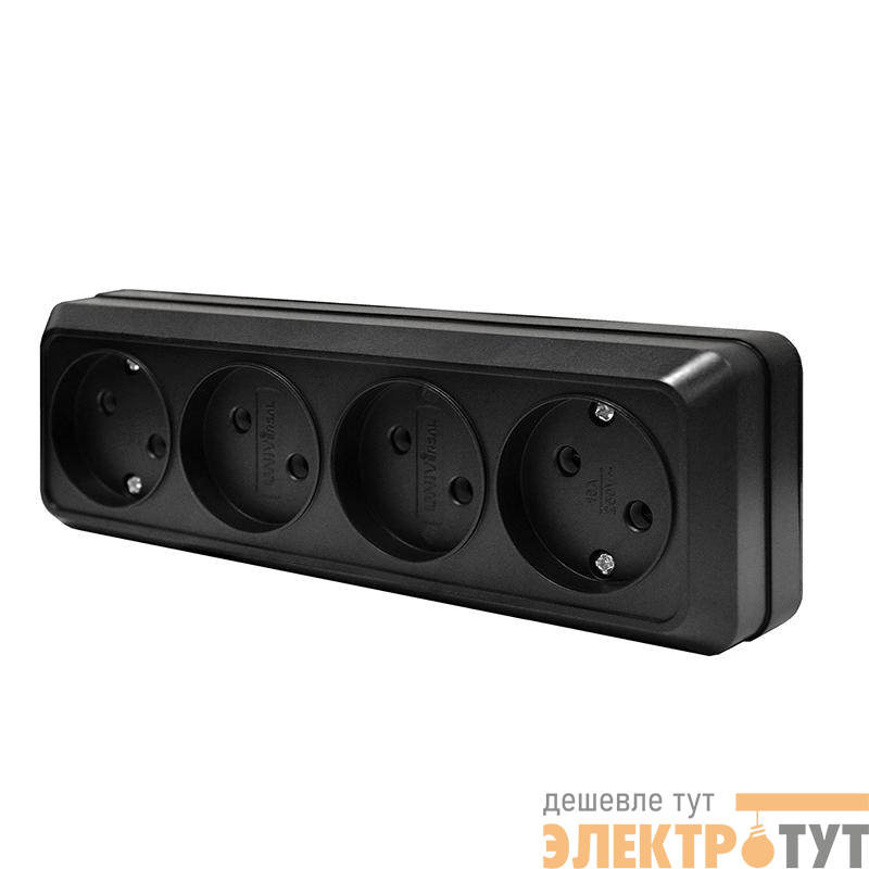 2219 | Розетка 4-м ОП Олимп 16А IP20 без заземл. черн. Universal