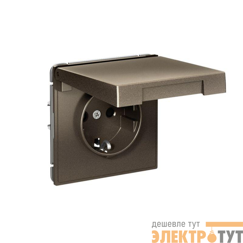 GAL000646S | Розетка ArtGallery 16А IP20 с заземл. со шторками с крышкой быстрозажим. клем. механизм мокко SE