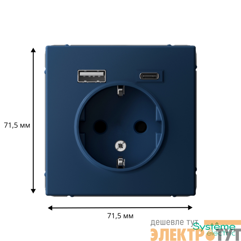 Розетка силовая Systeme Electric серии ArtGallery 16А в цвете аквамарин с заземлением и шторками с розеткой USB, с двумя разъемами тип А и тип С. Розетка совмещает в себе сразу 3 функции в одном изделии. Удобное и современное решение для дома, офиса и других помещений.