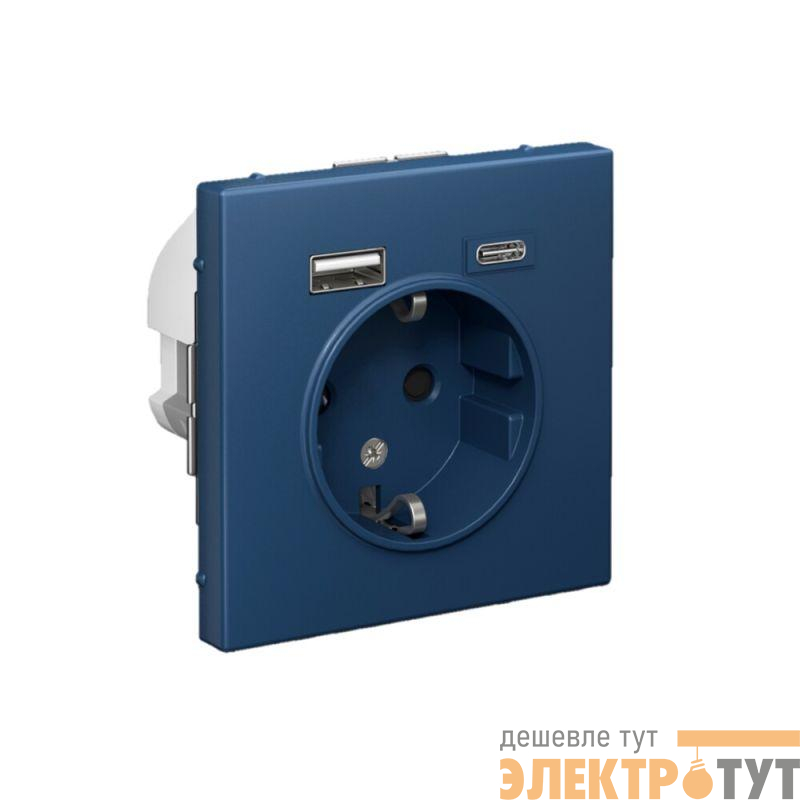 GAL001132 | Розетка ArtGallery 16А с 2-мя заряд. устройствами USB A+C 5В/2.4А/3А 2х5В/1.5А механизм аквамарин SE