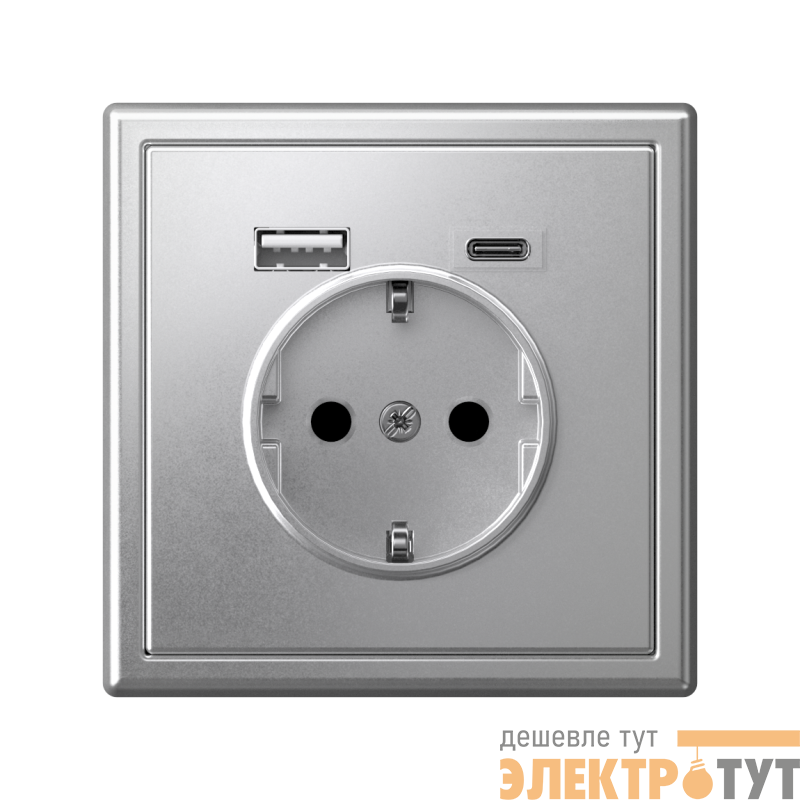 GAL000332 | Розетка ArtGallery 16А с 2-мя заряд. устройствами USB A+C 5В/2.4А/3А 2х5В/1.5А механизм алюм. SE