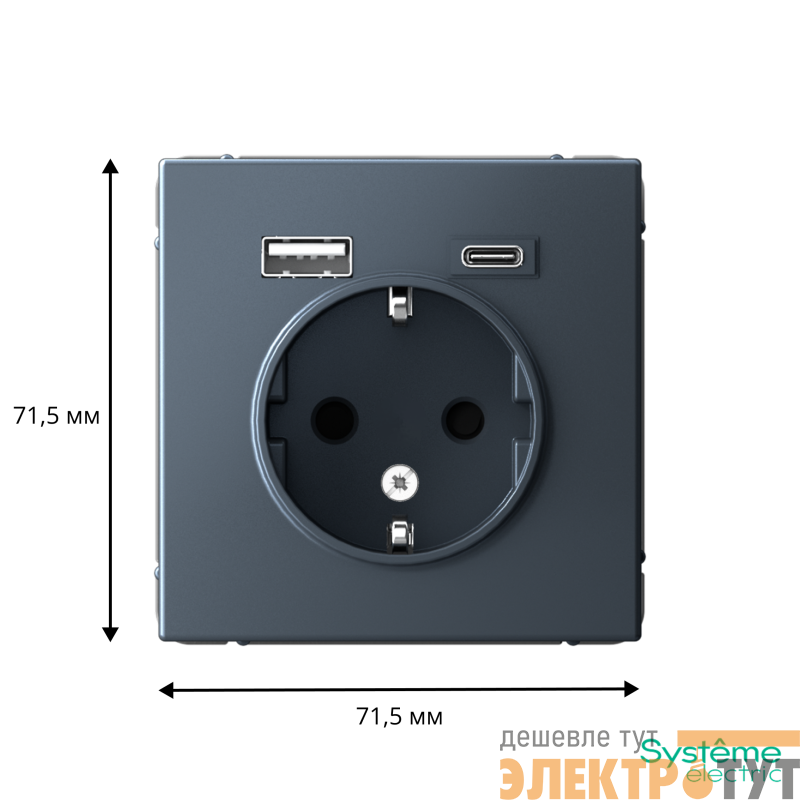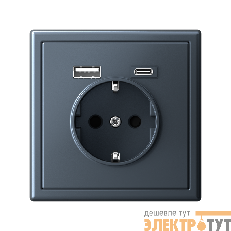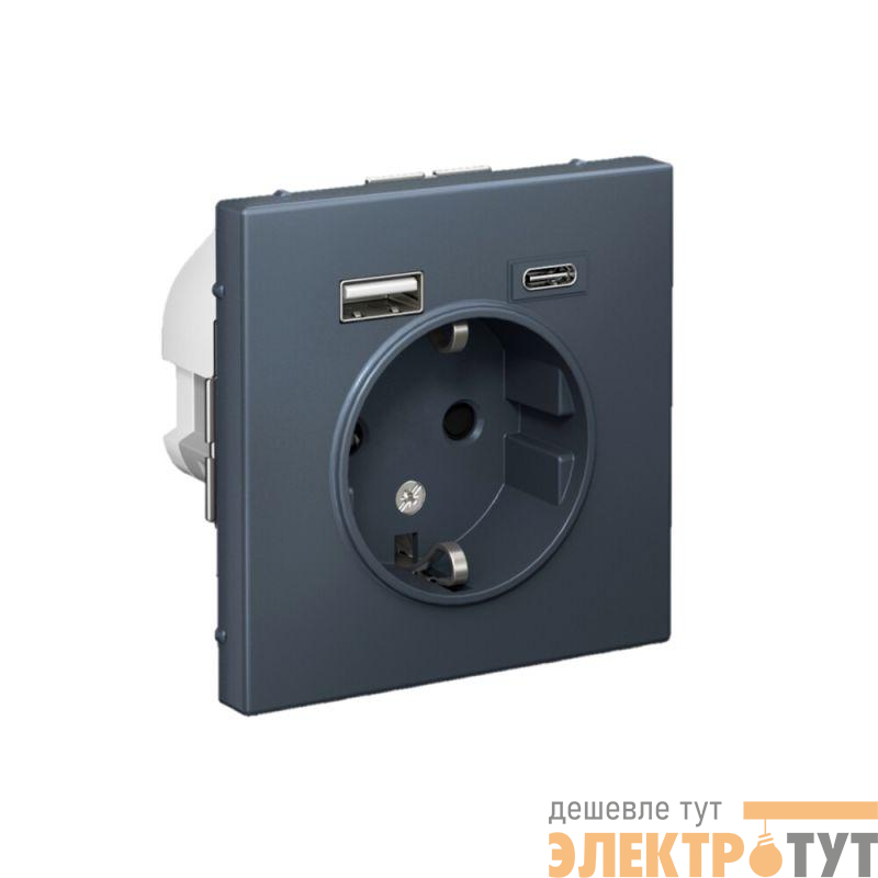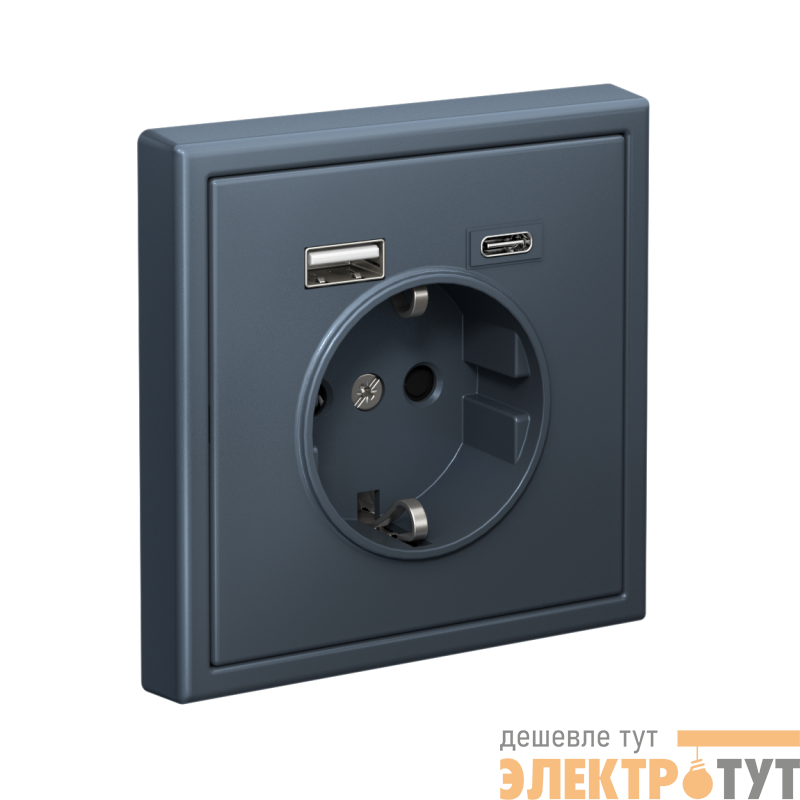Розетка силовая Systeme Electric серии ArtGallery 16А в цвете грифель с заземлением и шторками с розеткой USB, с двумя разъемами тип А и тип С. Розетка совмещает в себе сразу 3 функции в одном изделии. Удобное и современное решение для дома, офиса и других помещений.