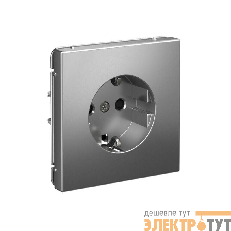 Механизм с быстрозажимными клеммами Systeme Electric серии ArtGallery в цвете сталь розетки одинарной с заземлением и шторками подходит для сетей 250 В, на ток 16 А.