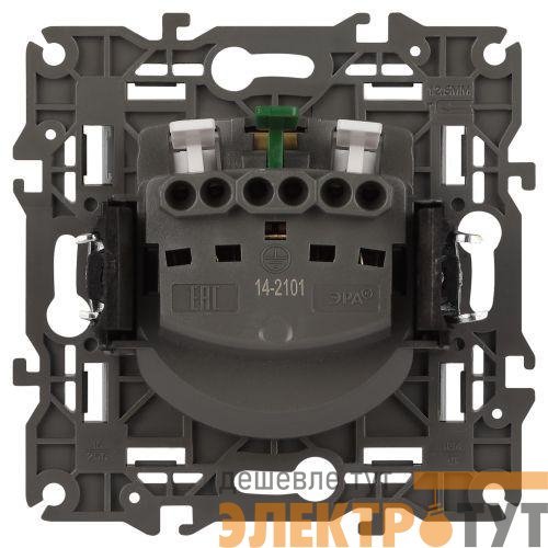 Розетка с заземлением серии Эра Elegance цвет титан 14-2101-16. Характеристики 16А 250В. Оснащена автоматическими клеммами для надёжной фиксации жил кабеля в механизме. Рамки приобретаются отдельно.
