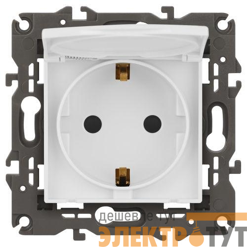 Розетка с заземлением, шторками и крышкой серии Эра Elegance цвет белый матовый 14-2103-01М. Характеристики 16А 250В. Оснащена автоматическими клеммами для надёжной фиксации жил кабеля в механизме. Рамки приобретаются отдельно.