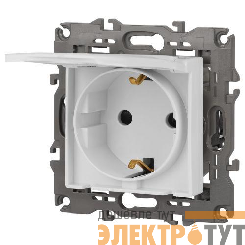 Б0065808 | Розетка Elegance 14-2103-01М 16А 250В 2P+E Schuko защ. шторки с крышкой матов. бел. Эра
