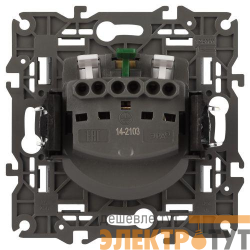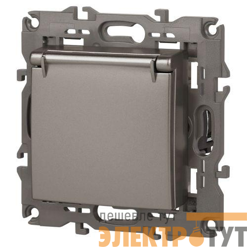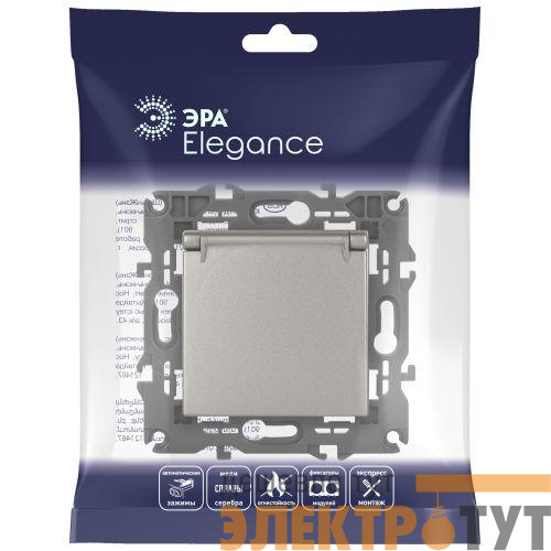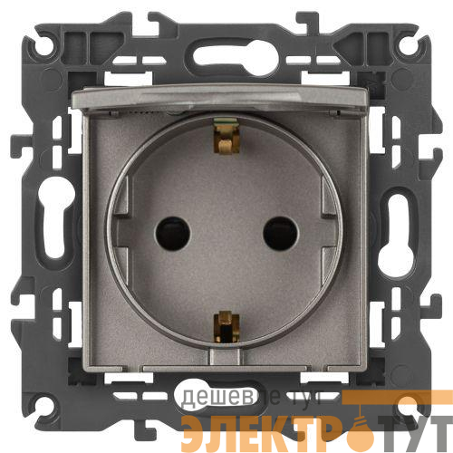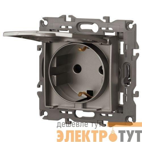 Розетка с заземлением, шторками и крышкой серии Эра Elegance цвет титан 14-2103-16. Характеристики 16А 250В. Оснащена автоматическими клеммами для надёжной фиксации жил кабеля в механизме. Рамки приобретаются отдельно.