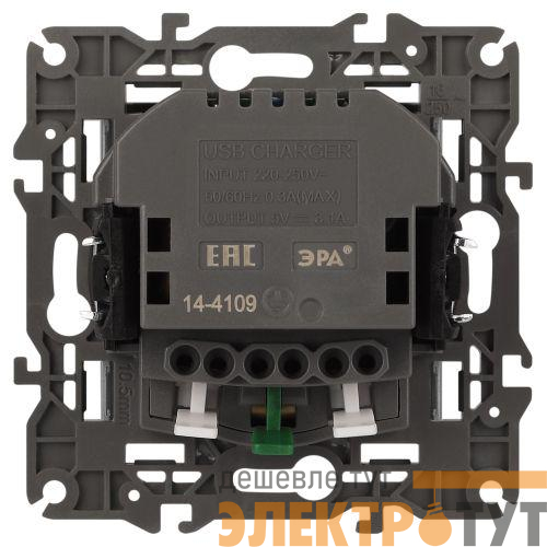 Розетка с USB серии Эра Elegance цвет титан 14-4109-16. Номинальные характеристики силовой розетки 16А 250В, разъемов USB 3А 5В. Оснащена автоматическими клеммами для надёжной фиксации жил кабеля в механизме.