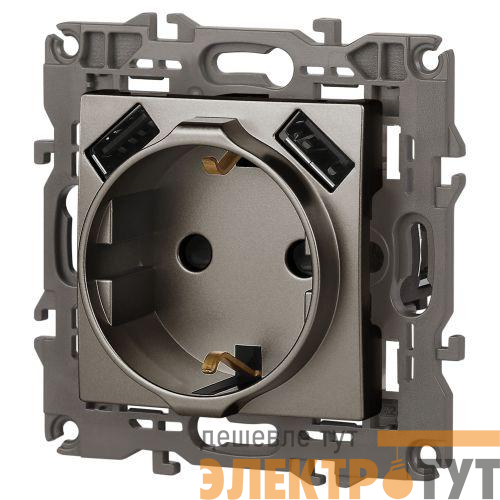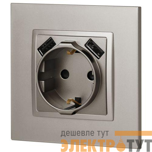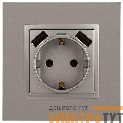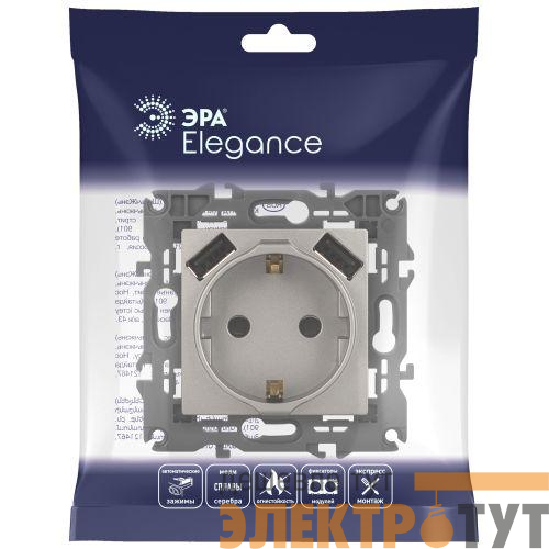 Б0065775 | Розетка Elegance 14-4109-16 16A 250В 2P+E защ. штор. с 2xUSB 3А 5В титан Эра