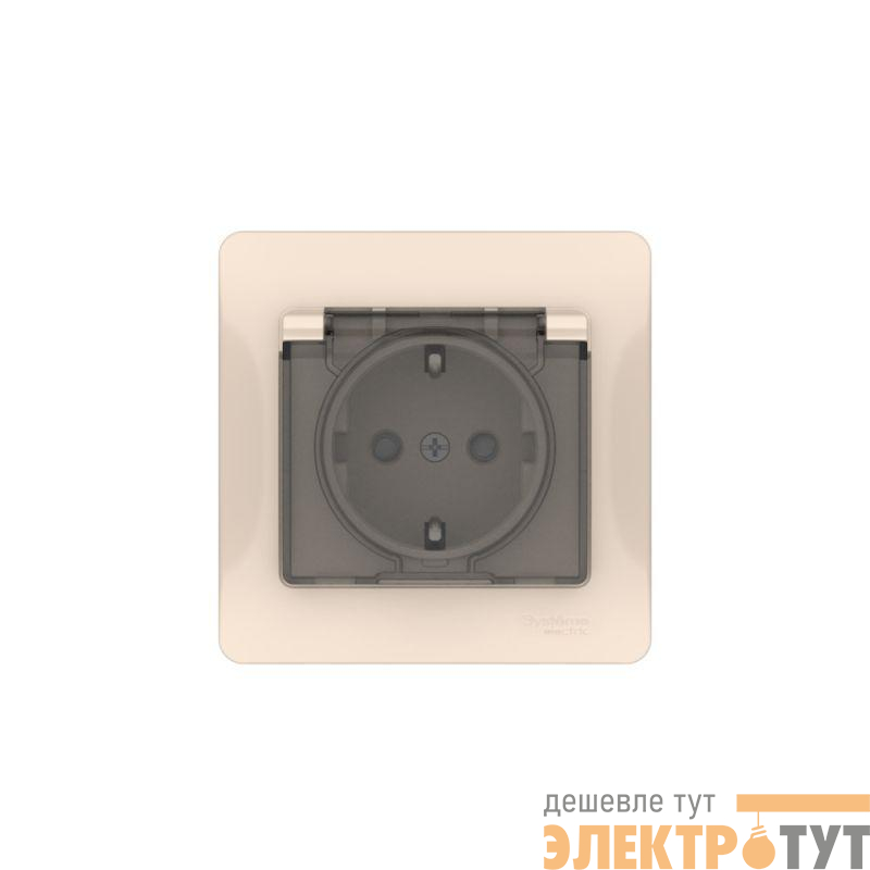 GSL000248S | Розетка Glossa 16А IP44 с заземл. защ. шторки с крышкой быстрозажим. клем. в сборе беж. SE