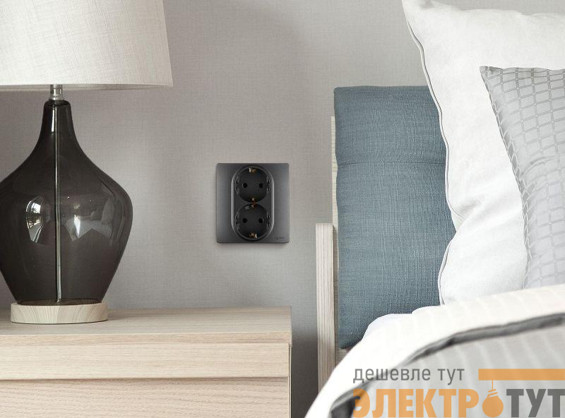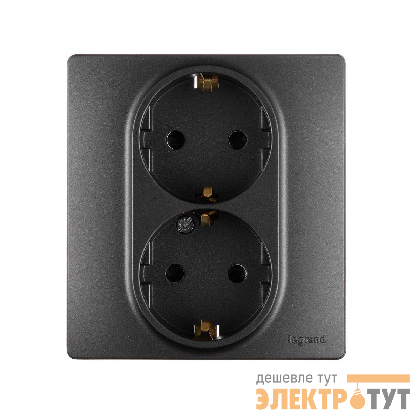 Розетка двойная с заземлением с защитными шторками Inspiria в сборе с рамкой для скрытого монтажа, цвет "Антрацит". Максимальный ток 16А, напряжение 250В~, максимальная мощность 3680Вт, безвинтовые зажимы. Применяется для электропитания в зданиях с проводкой с заземлением (с защитным проводником). Позволяет компактно разместить две розетки в одном установочном месте.