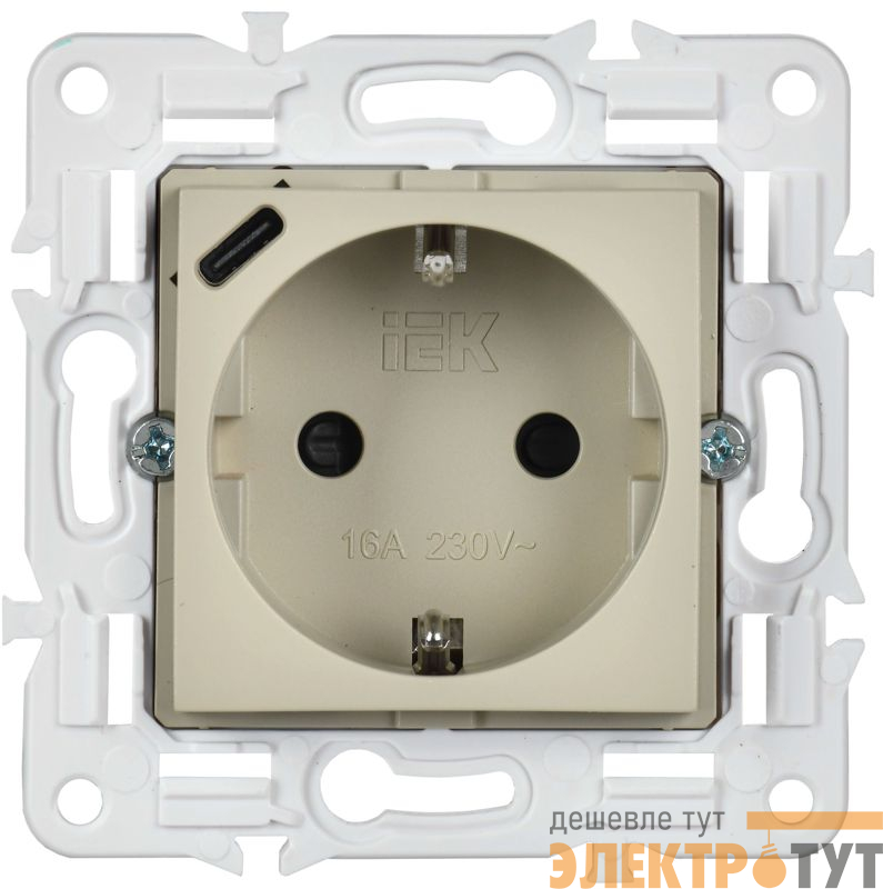 | Розетка SKANDY 18Вт 16А с заземл. защ. шторки с USB C SK-R17B беж. IEK SK-R14-16-U14-018-K10