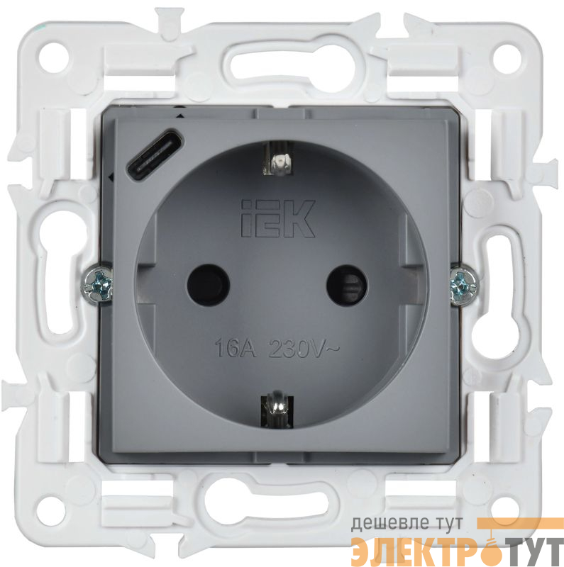 | Розетка SKANDY 18Вт 16А с заземл. защ. шторки с USB C SK-R17Gr сер. IEK SK-R14-16-U14-018-K03