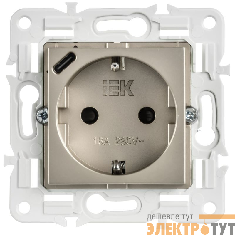 | Розетка SKANDY 18Вт 16А с заземл. защ. шторки с USB C SK-R17Sh шампань IEK SK-R14-16-U14-018-K37