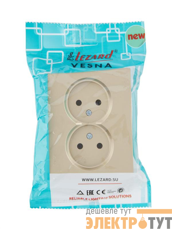 742-3600-128B | Розетка VESNA двойная без заземл. ПБТ зол. LEZARD