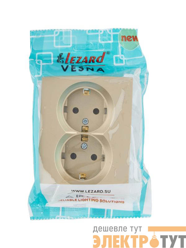 742-3600-127B | Розетка VESNA двойная с заземл. ПБТ зол. LEZARD