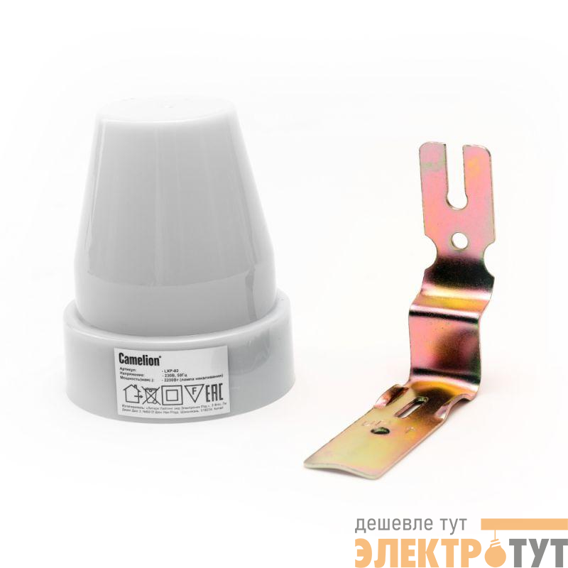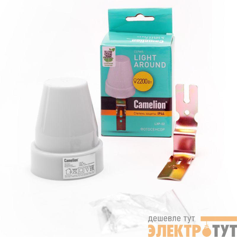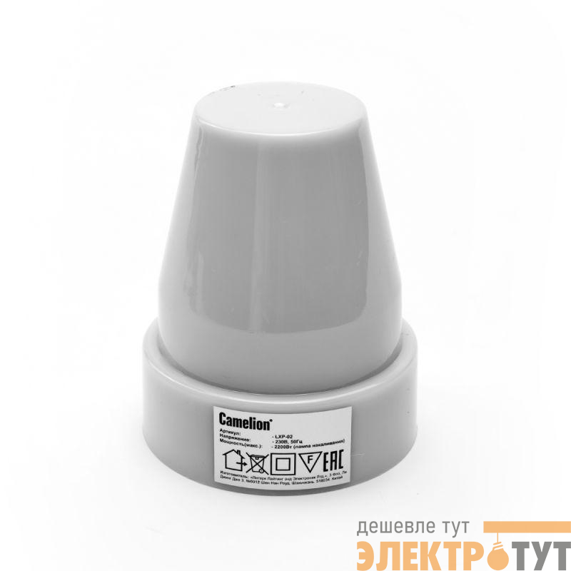 Датчик освещенности фотореле Camelion LXP-02 2200Вт, размер 90х70х65мм, мощность 2200Вт.