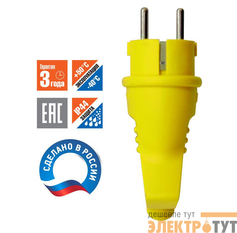 3080 | Вилка электрическая 1ф 16А 250В IP44 однофазная с ушком каучук желт. Universal