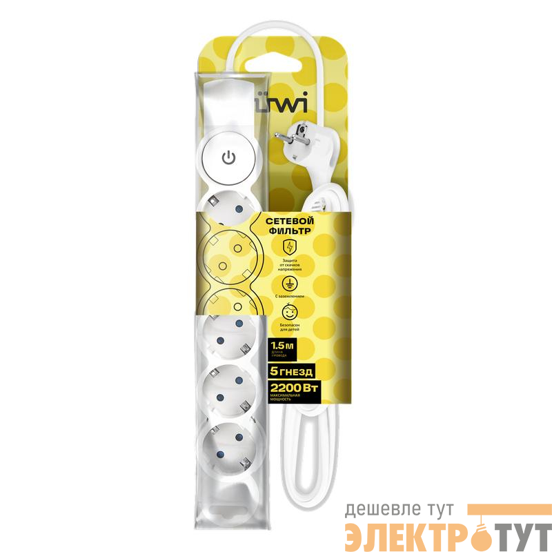 32574 1 | Фильтр сетевой 5х1.5м с/з со шторками с выкл 2200Вт 10А бел. Duwi