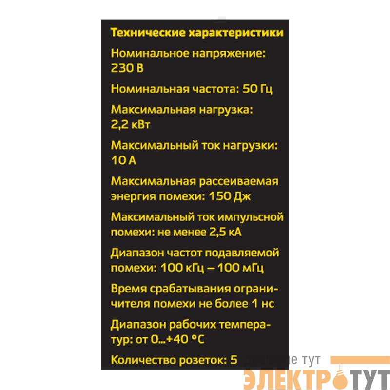 | Количество штепсельных розеток с заземлением: | 5 |