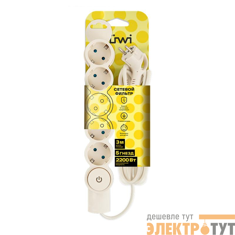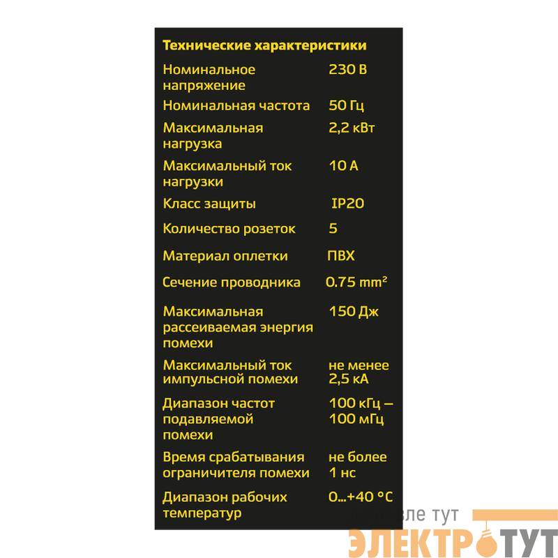 32572 7 | Фильтр сетевой 5х3м с/з с выкл 2кВт 10А/2 сл. кость Duwi